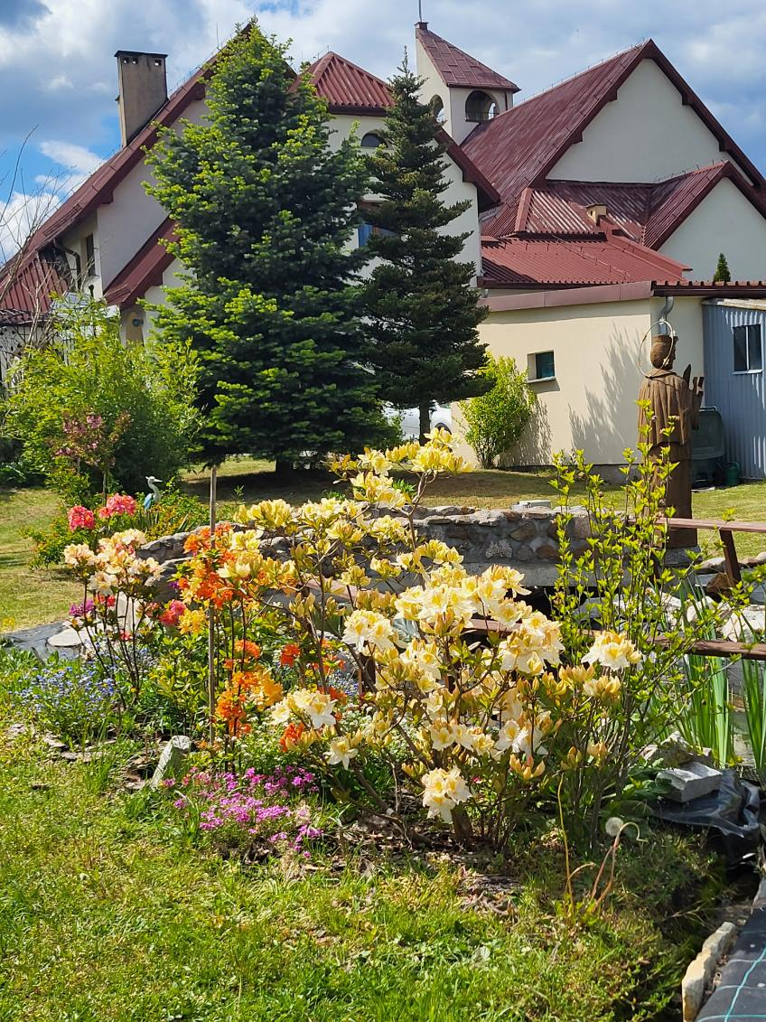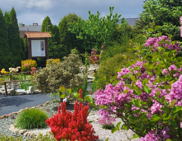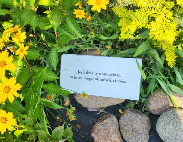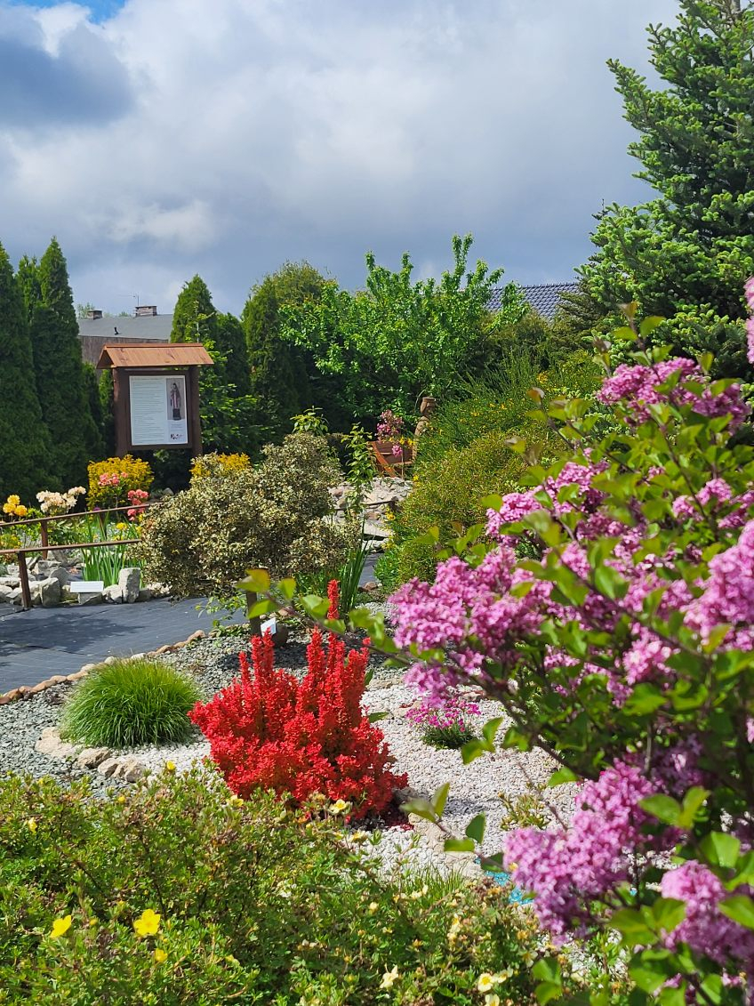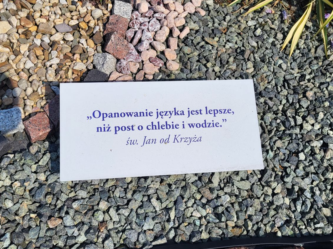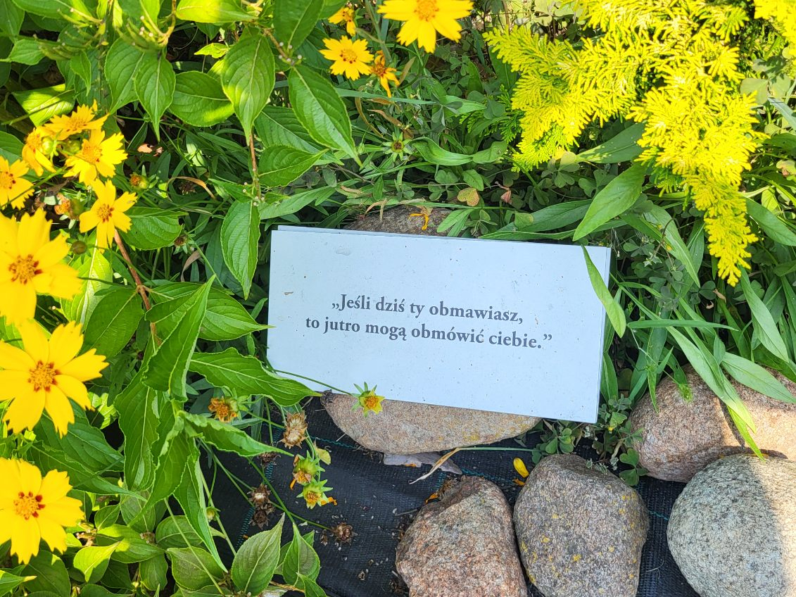 Co mieści się w ogrodzie św. Jana Nepomucena w Lisowicach z przesłaniem "Będziesz miłował, nie hejtował."?